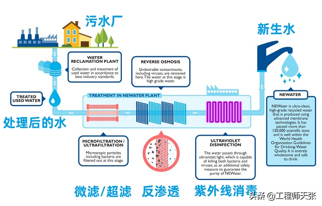 新生水(NEWater)是由解決過的污水做成的高端中水回用,選用優秀的膜分離技術和紫外線殺菌技術性開展進一步凈化處理,使之超潔凈和安全性喝。在水再造加工工藝中,污水先通過微濾、超濾膜預備處理,除去細微顆粒物和細菌病毒;解決后的水再通過ro反滲透(RO),ro反滲透基本上能夠除去所有的無機化合物的殘渣,例如鉀離子等,只容許水分根據,可以這么說到這一步水早已很純粹了,這跟我們現在家庭使用的反滲透凈水機是一個水準;最終進到紫外線殺菌環節,致力于擊殺剩下的病菌,保證水的純凈度。
