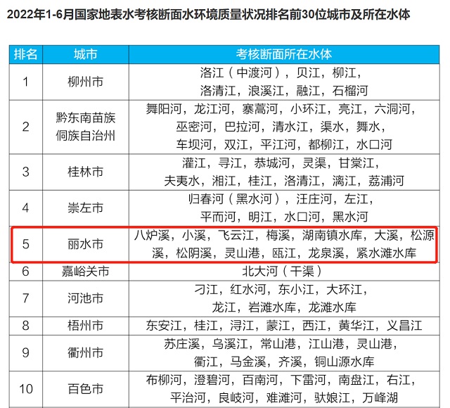 在今年上半年水環(huán)境質(zhì)量前10名的榜單中,浙江省麗水市排名第5。前5月,168個(gè)重點(diǎn)城市空氣質(zhì)量排名中,麗水位列第8。