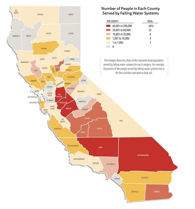 據(jù)加州水資源控制委員會(huì)調(diào)查透露,截至2021年12月,全州已有超過370套供水系統(tǒng)出現(xiàn)問題,導(dǎo)致水質(zhì)不達(dá)標(biāo),其中三分之二的供水系統(tǒng)卻仍在為貧弱社區(qū)供水,受影響居民超過92萬人。
