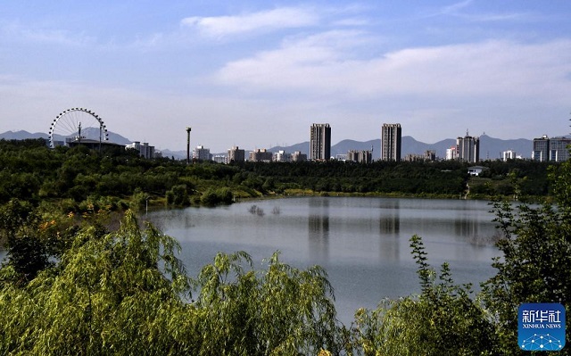 這是利用阜石路廢棄的大型砂石坑建設(shè)的西郊雨洪調(diào)蓄工程,蓄水量可達(dá)680萬(wàn)立方米(9月8日攝)。