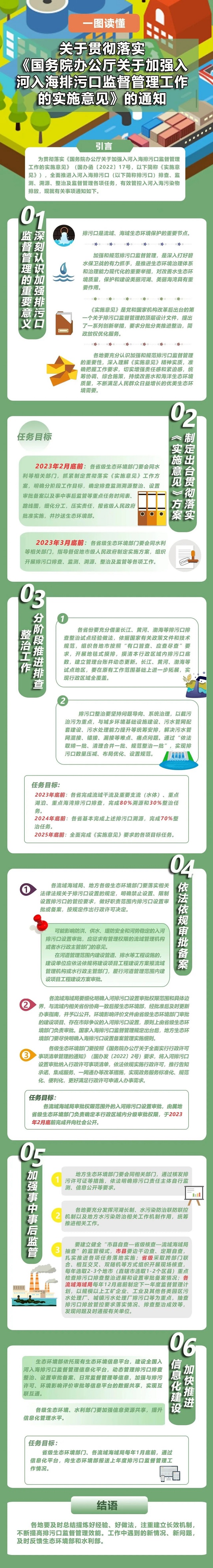 《通知》是貫徹落實《國務院辦公廳關于加強入河入海排污口監督管理工作的實施意見》(以下簡稱《實施意見》)的重要舉措,從深刻認識加強排污口監督管理的重要意義、制定出臺貫徹落實《實施意見》方案、分階段推進排查整治工作、依法依規審批備案、加強事中事后監管、加快推進信息化建設六個方面,明確細化了要求。