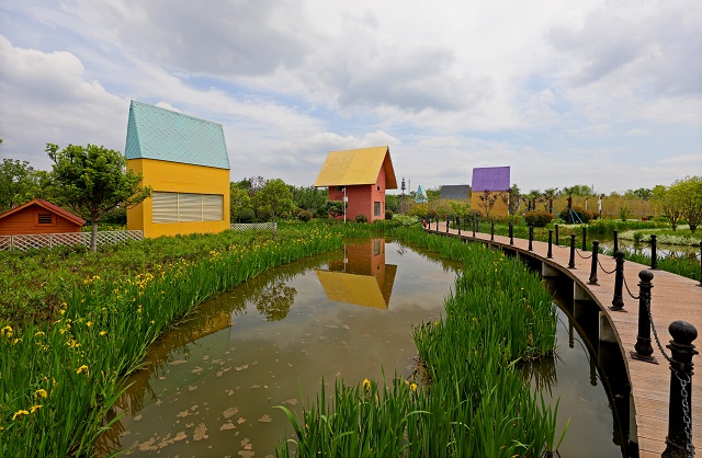 西安航天基地第一凈水廠處理設施上方的濕地公園一角。