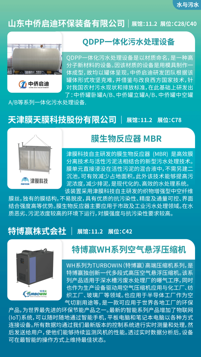 污泥干化機(jī)、污泥脫水機(jī)、過濾機(jī)、懸浮風(fēng)機(jī)、壓縮機(jī)、一體化污水處理設(shè)備、水處理藥劑、智能廢水處理系統(tǒng)、凈水器、活性催化劑、雨水收集回用、平板膜、超濾膜等。