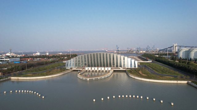 兩個水閘可引可排,一天兩潮的長江水可以通過兩個水閘進行引水,來補充整個浦東北片區(qū)域所需的水資源。而泵站主要是排澇功能,田利勇介紹說如果浦東遭遇大的暴雨,雨水來不及排,通過泵站強排進入長江口可以實現(xiàn)該區(qū)域的除澇安全。這四臺水泵,每臺水泵的流量是22.5立方米每秒,總的流量90立方米每秒。這個泵站如果全部啟用的話,兩天基本上可以把西湖水抽干。
