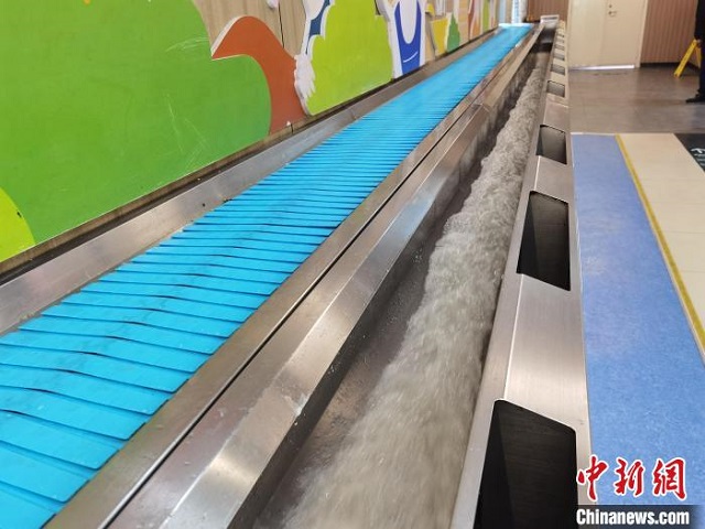走進浙大城市學院三食堂,學生將食物殘渣倒入收集槽時,持續(xù)涌出的流水將殘渣沖至設(shè)有過濾網(wǎng)的收集箱,過濾后的水又循環(huán)至殘渣收集槽,繼續(xù)使用。此過程中,較臟的水被排出洗碗機系統(tǒng),而安裝于收集槽上方的自來水出口,既方便洗手,也可補充沖洗水,實現(xiàn)“一水多用”。