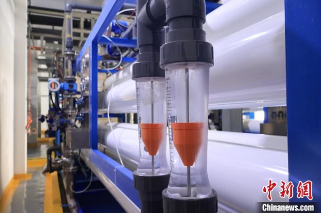 九峰垃圾焚燒廠使用垃圾滲濾液處理系統(tǒng),將垃圾滲濾液過濾至清澈狀態(tài)。 黃俊杰攝