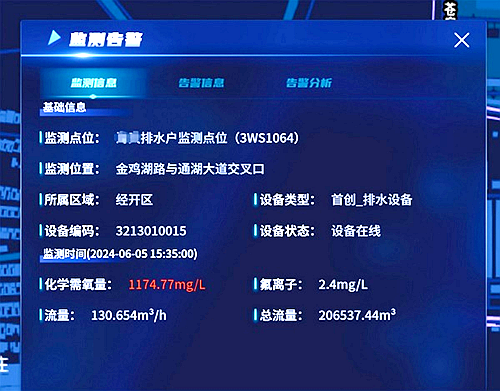 目前,宿遷市已搭建了統(tǒng)一的物聯(lián)感知平臺、視頻中臺,打造了國內領先的城市物聯(lián)感知體系,實現(xiàn)監(jiān)測數(shù)據(jù)的實時匯聚接入、智能處理分析。共完成1.8萬公里基礎管線匯聚治理,累計上報庫表類監(jiān)管數(shù)據(jù)49萬余條,燃氣、供水、排水、橋梁實時監(jiān)測數(shù)據(jù)8660萬條,同步完成18類約40萬條市級數(shù)據(jù)共享。系統(tǒng)特色場景應用包括水源地、供水、排澇、污水、城市河道水位水質等城市水務全流程監(jiān)管,實現(xiàn)燃氣供應端、輸配端、用戶端風險隱患的常態(tài)化跟蹤監(jiān)管,賦能城市生命線安全治理。系統(tǒng)試運行以來,全市共發(fā)現(xiàn)隱患點位1467個,布設及安裝智能傳感監(jiān)測設備1590套,覆蓋中心城市示范區(qū)橋梁8座及管線900公里,全面推動傳統(tǒng)基礎設施領域安全生產管理向數(shù)字化、智慧化轉型,公共安全治理從“事后被動應對”向“事前主動預防”大步邁進。圖為宿遷市某排水企業(yè)水質超標報警信息。