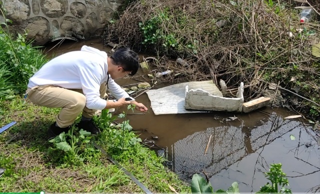 圖為工作人員在長江入河排污口試點(diǎn)排查中對排污口水質(zhì)進(jìn)行檢測。文雯攝