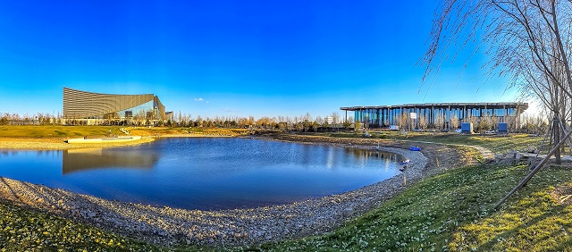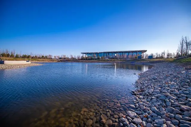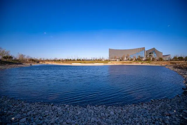 位于通州區的城市副中心三大文化建筑園區里,有一個“生態湖”,也是園區里的海綿設施之一——調蓄水體。
