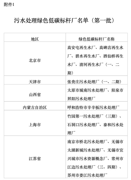 兩部門公布污水處理綠色低碳標桿廠名單