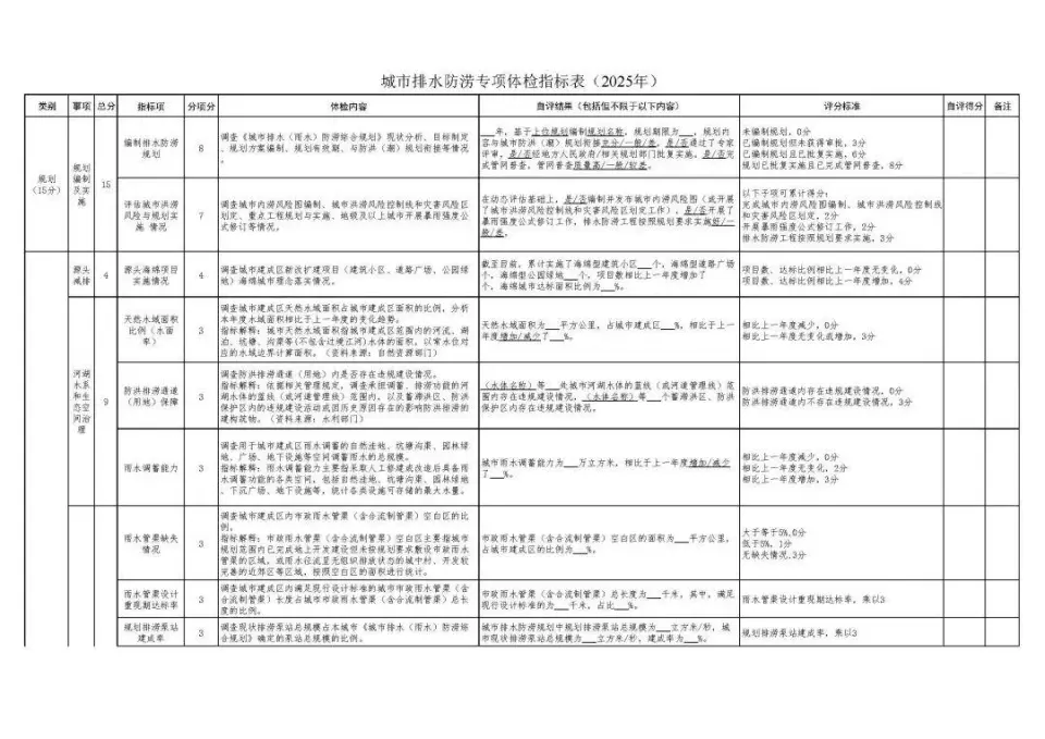 附件:城市排水防澇專項(xiàng)體檢指標(biāo)表(2025年)