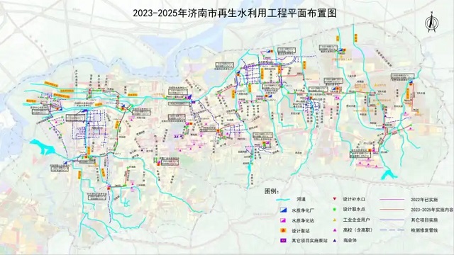 再生水利用工程采用“補水+修復+智慧化”三位一體策略,系統性提升水環境質量。對韓倉河、北太平河等河道實施生態補水,有效破解季節性斷流難題,讓河道重煥生機,改善城市生態環境。新建管網連接醫學中心、臘山、興濟河、大明湖、大辛河、巨野河、東部、南部等8大再生水系統分區,實現不同用水需求的精準調配,提高水資源利用效率。