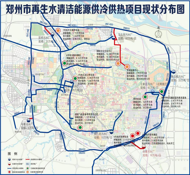 圖為鄭州市中心城區清潔能源項目現狀分布圖。