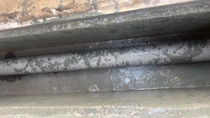 圖為管道、管溝綠色化改造(上:改造前破損情況,下:修補及增加防腐防滲后效果)。